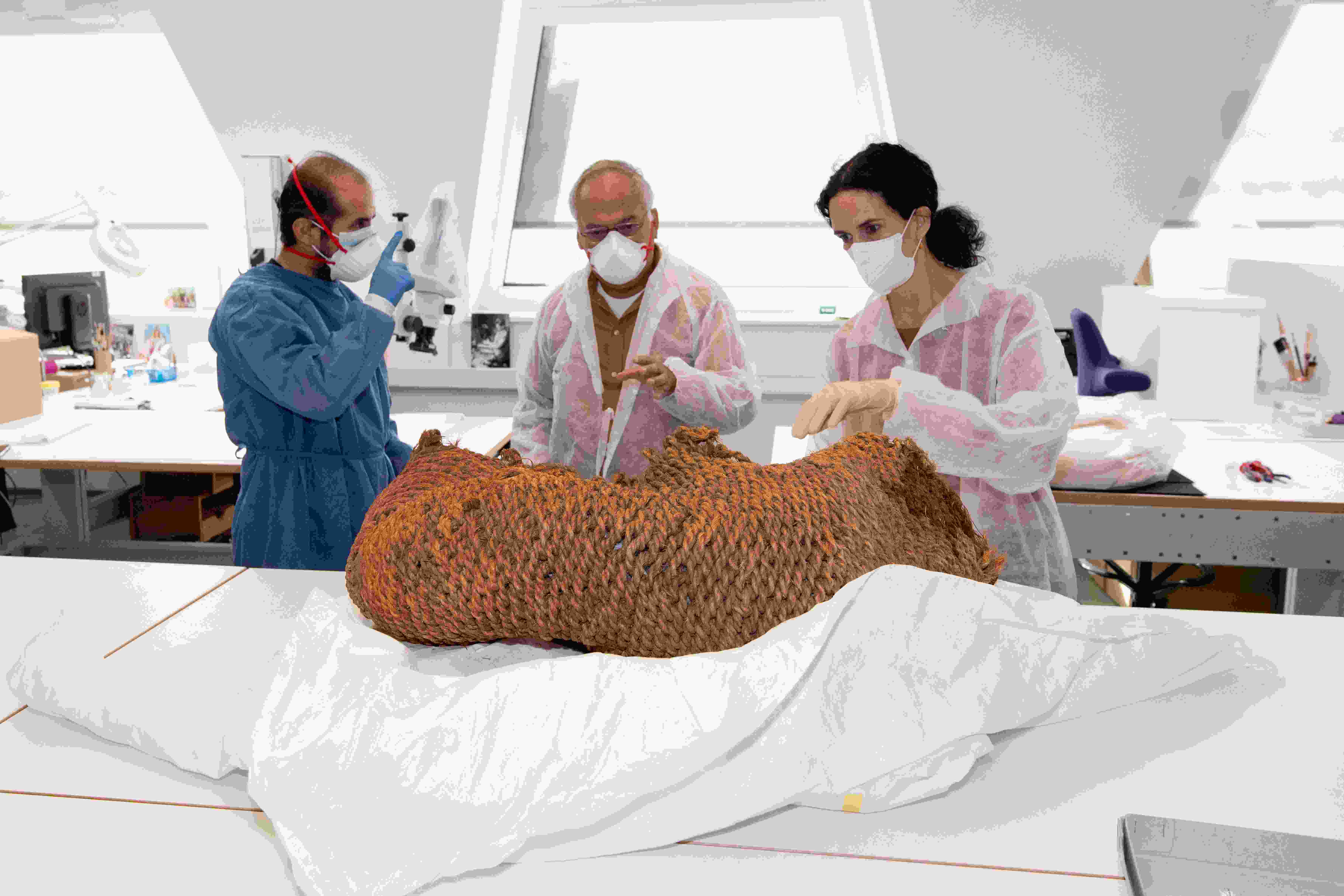 ولم يرَ الصحافيون سوى الصناديق الكبيرة التي وُضعت في داخلها الجثث البشرية الثلاث المحنطة في وضعية قرفصاء، مع أغطية من الألياف النباتية.