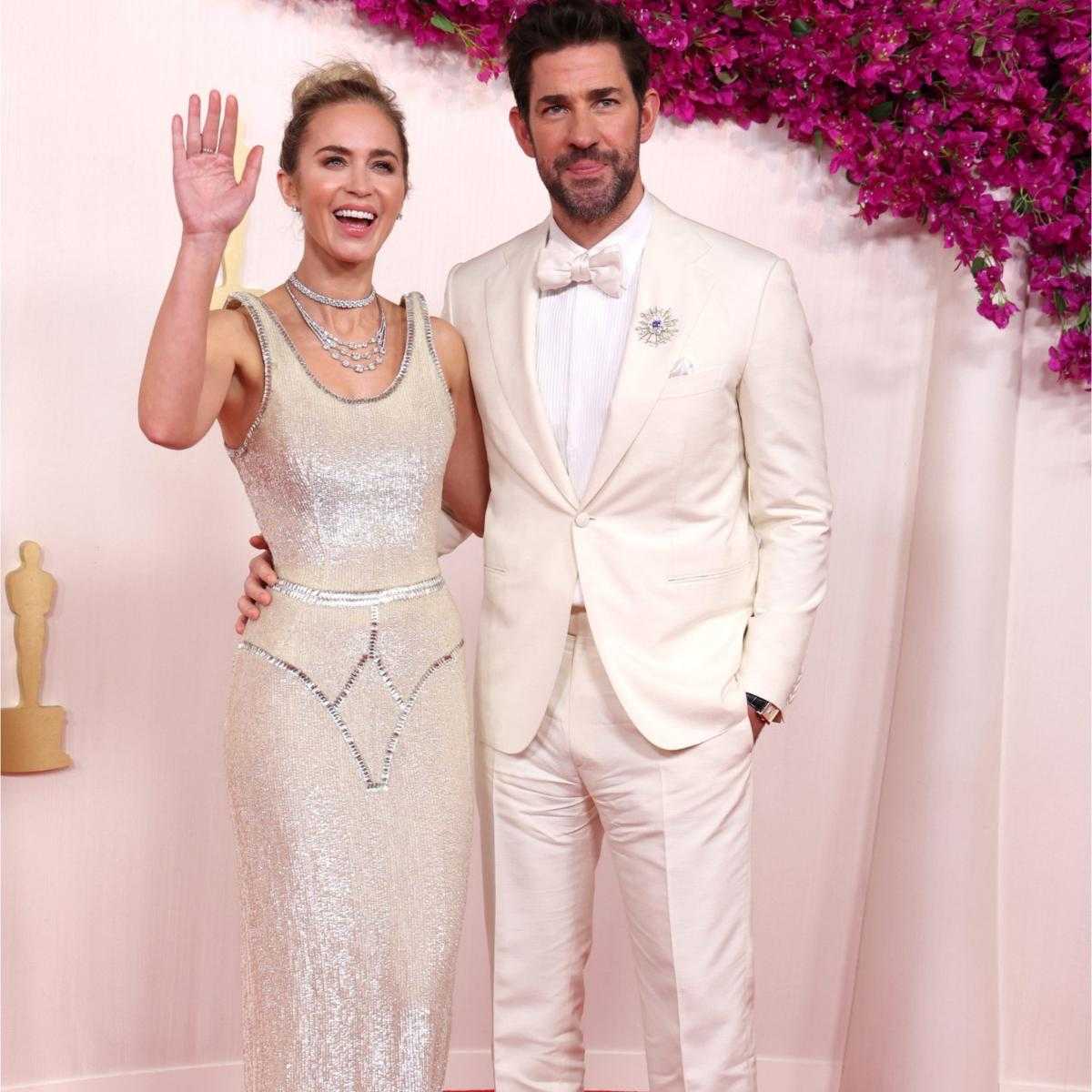 وأطل الثنائي إيميلي بلانت وجون كراسينسكي بإطلالتين باللون اوف وايت.